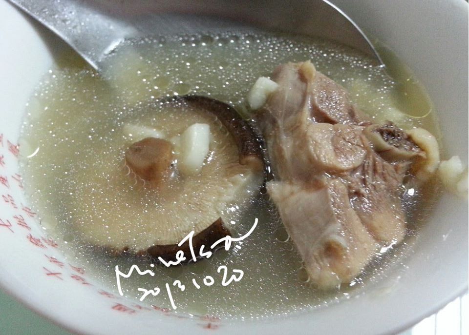 切碎有十幾顆蒜頭吧,煮了好久的雞湯,我愛蒜頭!