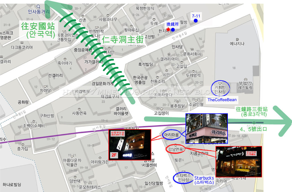 (1) 安國站6號出口,走仁寺洞大街約10分鐘。