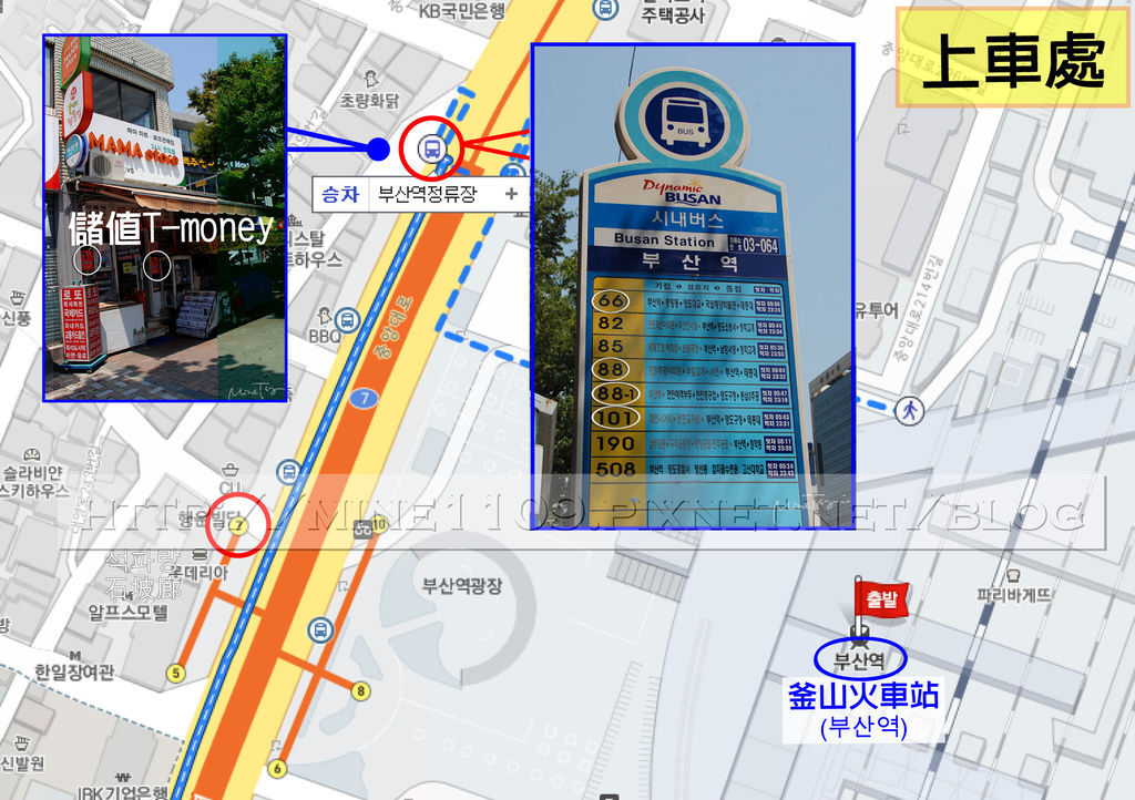 交通方式:我從釜山火車站(부산역)上車,見地圖,約1小時20分車程。