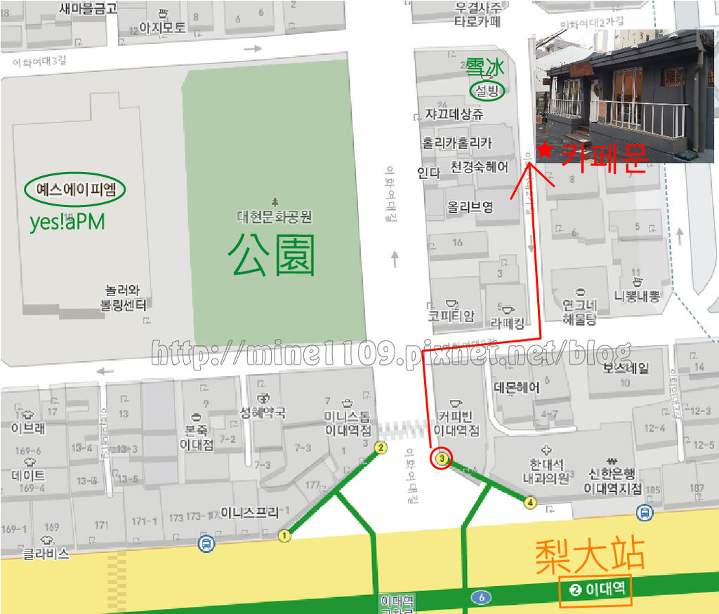 交通方式:梨大站(이대역)3號出口,步行約3分鐘。