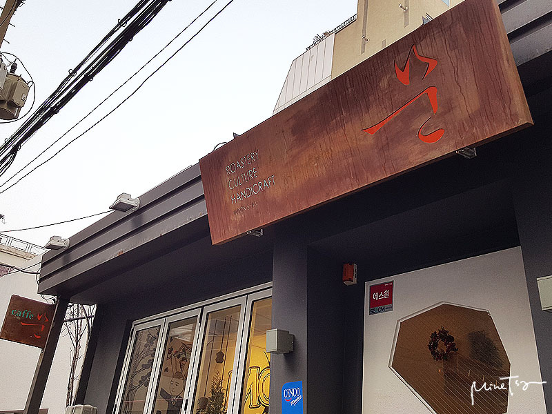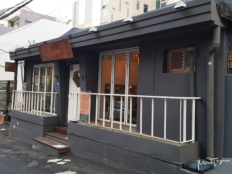 匆匆在通義洞的皇后名家吃完暖暖蔘雞湯,我們趕著坐地鐵來到梨大站。因為旅伴突然的約會,不得不大改行程,提早前來카페문。