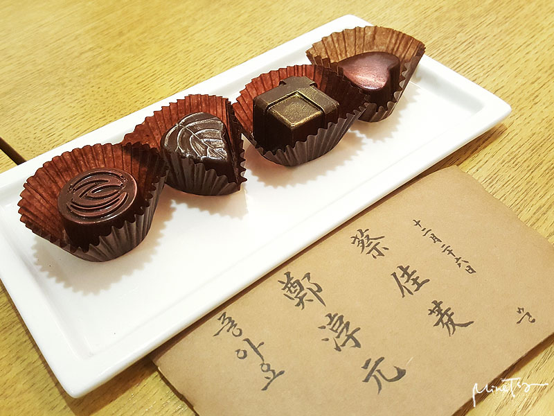 不只招待馬卡龍,連手工巧克力也拿來招待,我們一行人實在受寵若驚,第一次見面就如此款待真有點不好意思!實在太感謝!