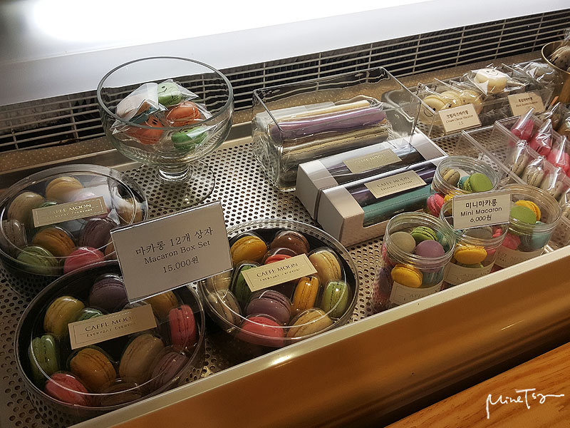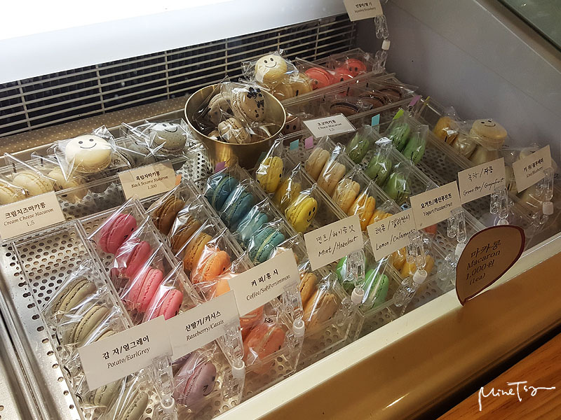 臨走前,其一旅伴想想馬卡龍,在櫃檯前選了好久,因為她完全不會韓文,結果我一個一個為她翻譯~一個1,000w。