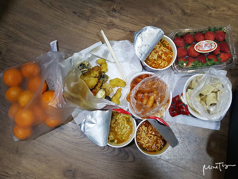 因為跟老闆狂聊了四個小時,聊到店裡快休息,我們依依不捨的離開,原本要去新村吃烤肉也取消(因為太興奮肚子不餓嗎?),買小吃回民宿吃泡麵~