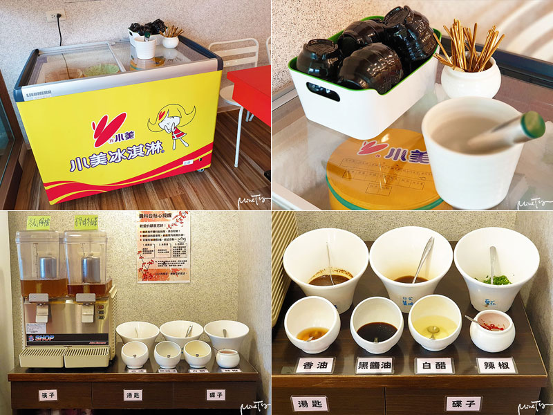 冰品使用的是小美冰淇淋,飲料是冬瓜檸檬和古早味紅茶、與醬料們放在同一區,二區都是乾乾淨淨很整齊,筷子湯匙碟子各自放在抽屜裡,一打開,哇!超級整齊,連帶我都小心翼翼了起來。