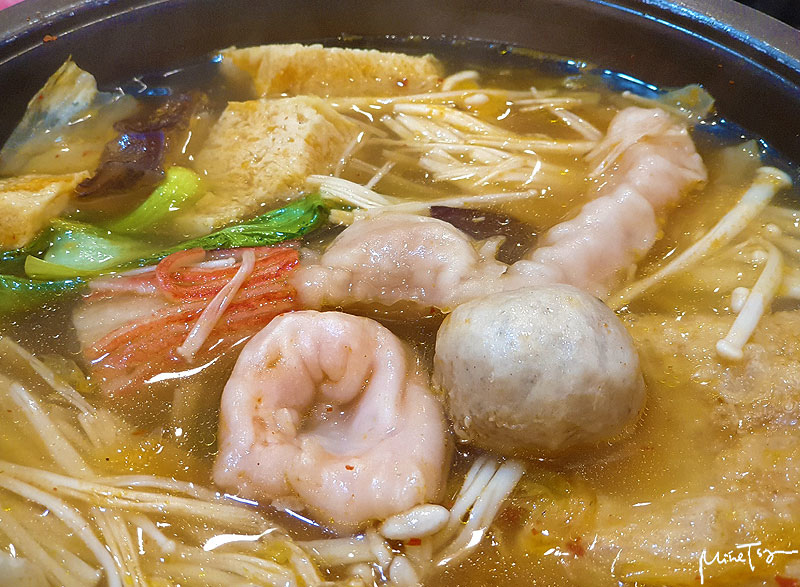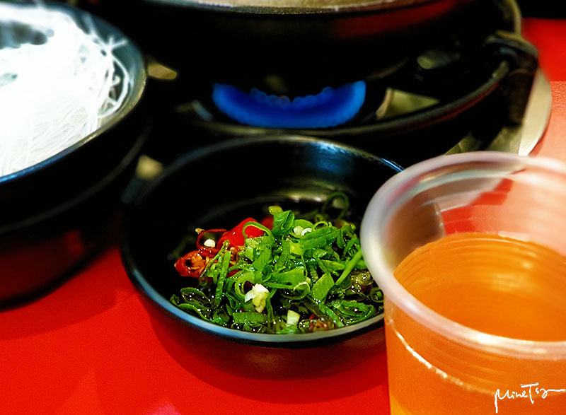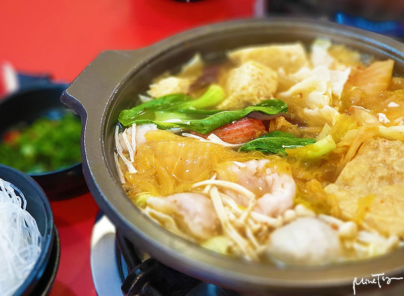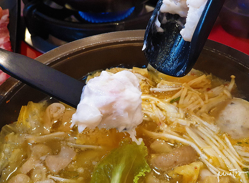 咖友一直慫恿我點麻辣鍋或牛奶鍋或南瓜鍋,menu上南瓜鍋還有圖示說有小熊、但不為拍照而點所以沒有心動!最後還是選擇了我吃鍋時常吃的韓式泡菜鍋。這款韓式泡菜鍋和我以往吃起來的不同,沒有過多的調味、吃起來不死鹹,或許沒有那麼厚重,但吃起來也很有泡菜的味道!