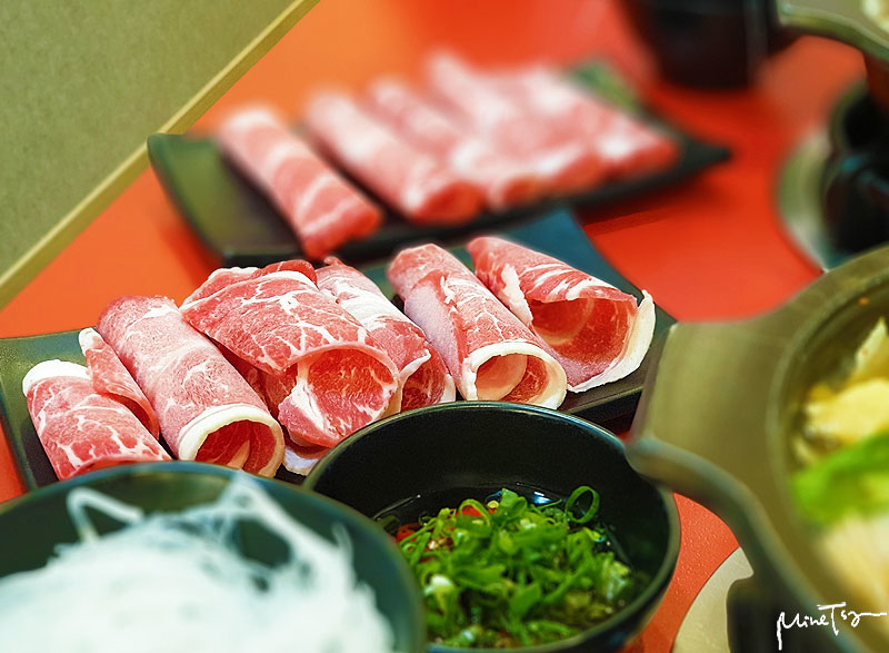 讓我覺得很不錯的是二款肉品(梅花豬和嫩肩牛),涮起來口感軟嫩、再沾點帶上香油和白醋更提味!很喜歡!