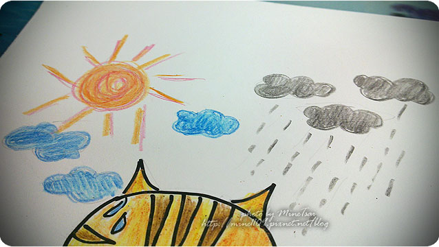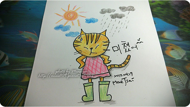 換了新的畫紙,彩色鉛筆不像之前顯色,所以今天很用力的刮紙。@@