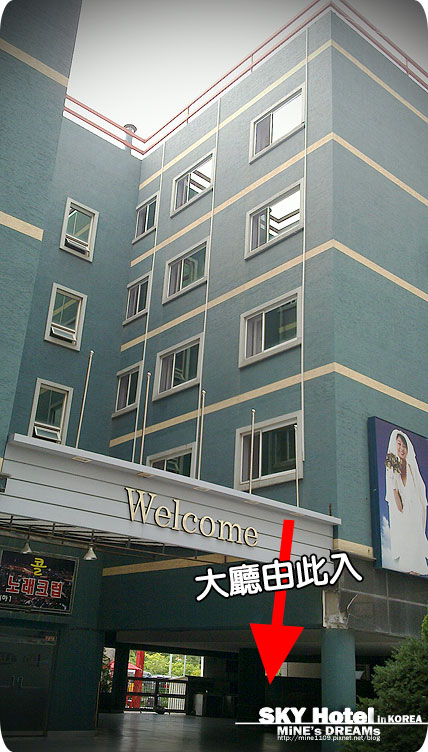 看到這高掛的大招牌上寫的韓文모텔 스카이就知道飯店到了。