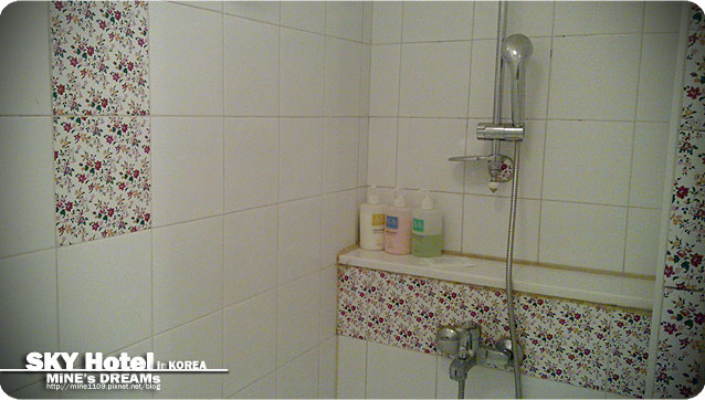 淋浴的地方,並沒有浴缸,反正我不會使用。那三罐的沐浴設備我沒有使用,還是用自己的。