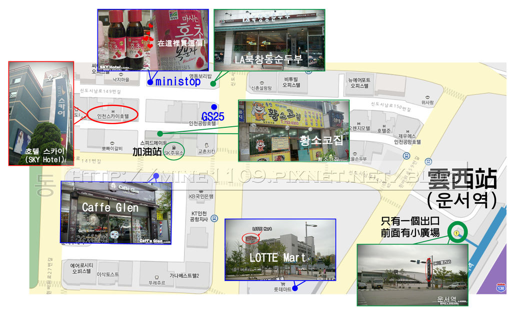 交通方式:仁川雲西站(운서역)1號出口,約5分鐘。如果拖著行李走,會走得比較慢,可能會到10分鐘。