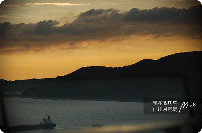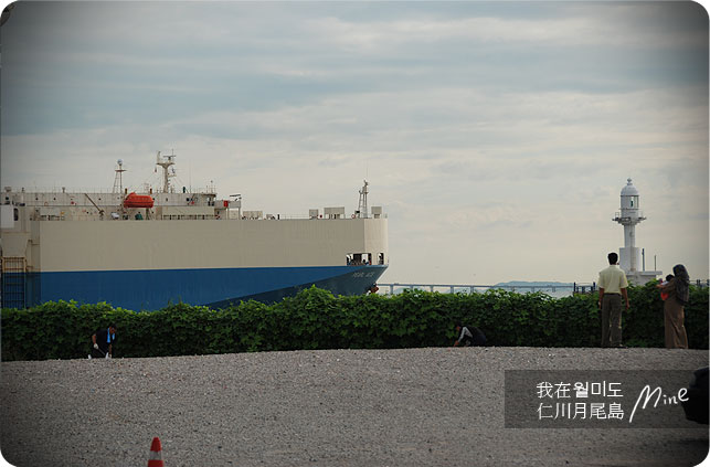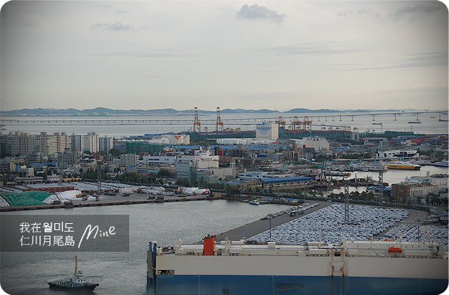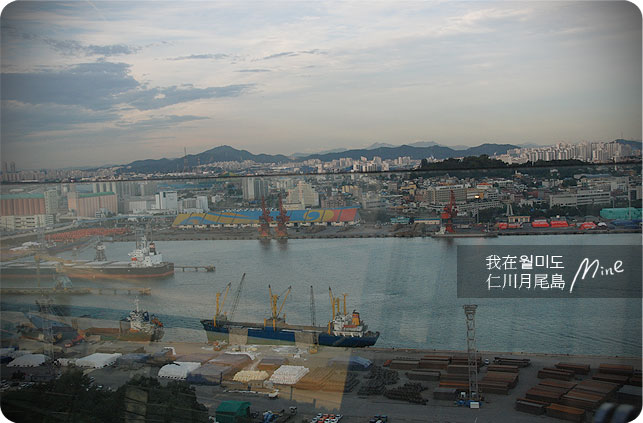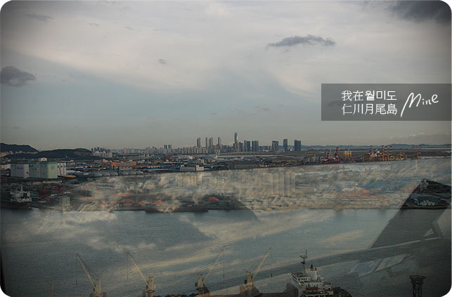 第一次在韓國坐公車就發生慘事,我不知道在哪裡下車(雖然仁川地站旁觀光案內的中文小姐有告訴我,但公車開得飛快)、跟著別人下車時不知道T-money還要再逼一次的手忙腳亂只好再下一站下車,下車時是這裡,我也不曉得是哪裡,剛好有船緩緩進港但附近人煙稀少,跟我認知的月尾島大不同。