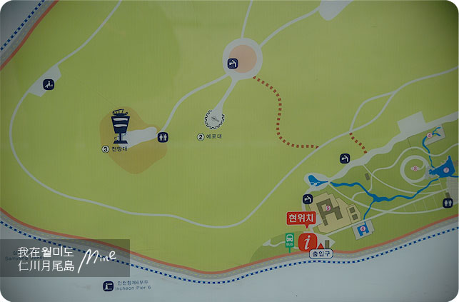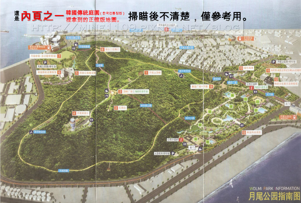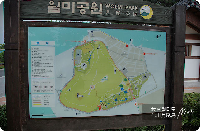 看著在案內裡拿的地圖,哇,我現在的位置離我的目標好遠,我的目標是前往月尾展望台(전망데크),但得先到韓國傳統庭園(한국전통정원)裡坐海豹車(물범카)上去展望台。(收集的資料如此,案內的中文小姐也是如此說)