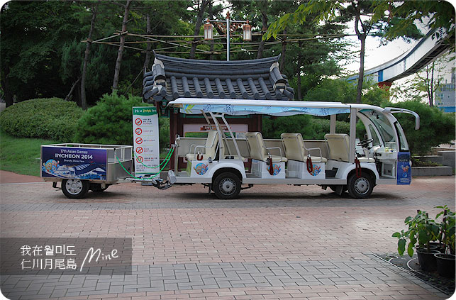 看見將要乘坐的交通工具 - 海豹車(물범카),可是它看起來不太妙的樣子,問了服務中心人員才知道現在沒辦法坐,要上月尾展望台(전망데크)只能走上去。