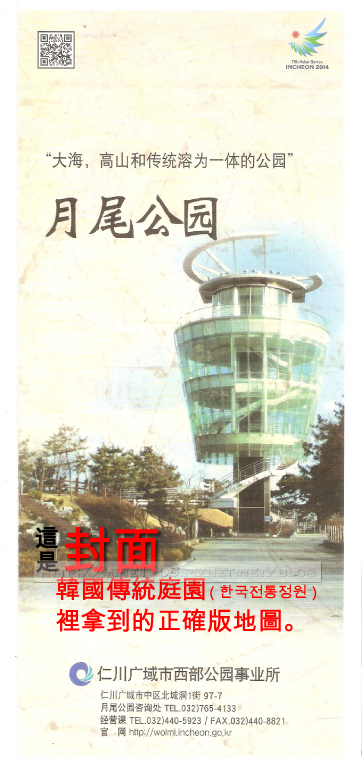 ▲ 這是韓國傳統庭園(한국전통정원)服務中心人員給我的中文版DM。DM中的它就是月尾展望台(전망데크)。