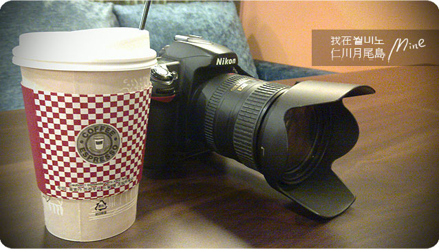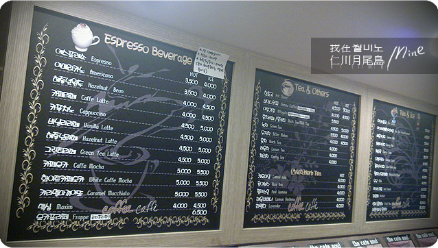 沒有吃晚餐,就灌咖啡~~~~是韓文及英文的壁上MENU。